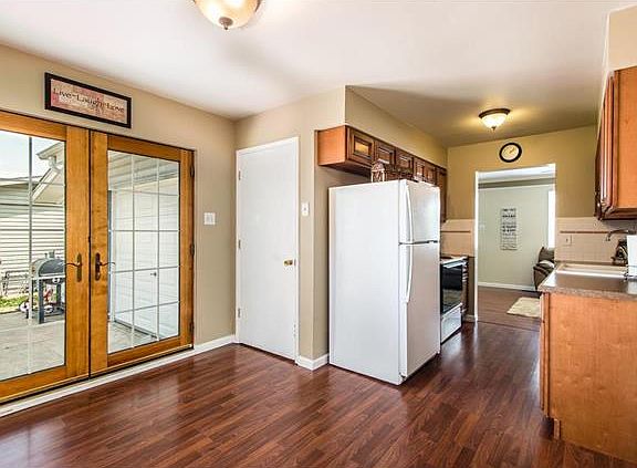 Wonderful home for First Time Homebuyer's or those looking downsize! 960 SF on main level and finished basement make for a total of 1,920 SF of living space! This home features 3 bedrooms, 2 bathrooms and a finished basement with an additional bonus room perfect for an office or home gym (has a built-in cold water drinking fountain)! Beautiful double crown molding in living room, neutral colors and Pergot style floors throughout main level. French doors in the breakfast room allow for a lot of natural light and lead you to the huge patio and gorgeous backyard. Oversized garage has a full size door in back allowing you to drive through and has additional storage space! Newer six panel doors, gutters, soffit, and fascia, windows, air conditioner and furnace. Newer roof, siding on front of home and new two panel white shutters (2013).
