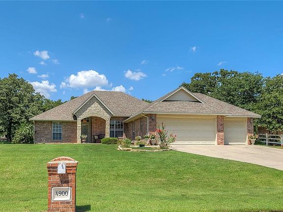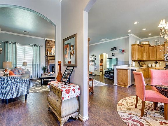 Country quiet, city convenient, and great curb appeal in the gated community of Sweetwater Springs! This charming one-owner and well-maintained home sits among mature trees on a large corner lot of a quiet Cul-de-Sac. The spacious open concept allows for great views and easy entertaining. Kitchen, dining, and living area hard flooring new in 2016. Stainless steel appliances new in 2017. Refrigerator stays with acceptable offer. Marble window sills throughout. Spacious master bedroom has over-sized walk-in closet and double vanity with separate shower and tub. Other bedrooms are nice sized with ample closet storage. Close to new elementary school coming this fall, fire station, hospitals in Guthrie and Edmond, and convenience stores. This home is truly move in ready! Schedule a showing today!