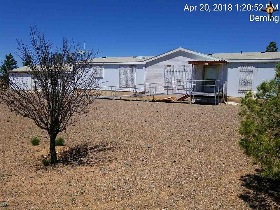 HIGH DESERT PROPERTY. Nice double wide located north of Deming approximately fifteen minutes from town. Corner lot of over four acres. Ever greens. Fenced around the house. Handicap accessible. Huge living room with dining area. Family room. Beautiful kitchen with eat in area. Big Utility room with storage. Split floor plan. Master bedroom is large with bath attached. Huge soaking tub, double sinks, separate shower, storage. Other two bedrooms are on opposite side of the house with another bathroom. Attached two car garage and workshop with a/c on the other side of it. power to all. Garage door opener. Lots of storage. Nice metal ramp to the front door. Security system. Property is set up to have another home up on it. Great view of the mountains. Seller will consider all offers. Please call for you private tour.