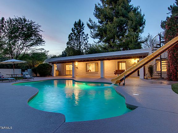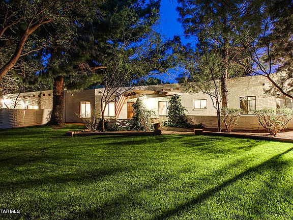 Here is your chance to be COOL....Seriously! This property enjoys an average of 10 degrees lower temperatures than Tucson. It would take 50+ years to replicate the forest this property has. Towering trees, lush lawns, mature bushes, and vines truly make this a special home. Views and privacy, this home backs up to the golf course and creek. If kitchens sell homes this won't last long. Beautifully upgraded kitchen w/marble back splash wall, tons of counter/cabinet space, and designer finishes throughout. Master suite has a private courtyard. Fireplaces in living & family rooms.Newly plastered pool w/ waterslide from a club house. This home has too many features to list please see the photos with additional comments. Schedule your viewing now to see if this private oasis should be yours.
