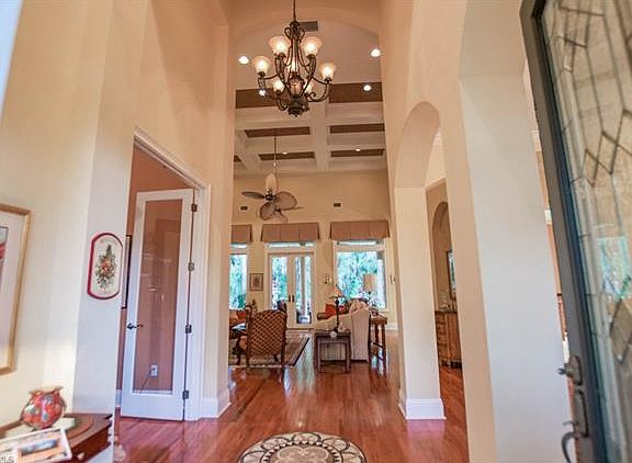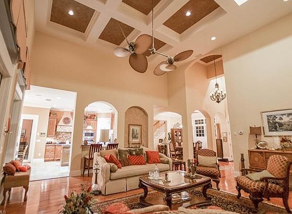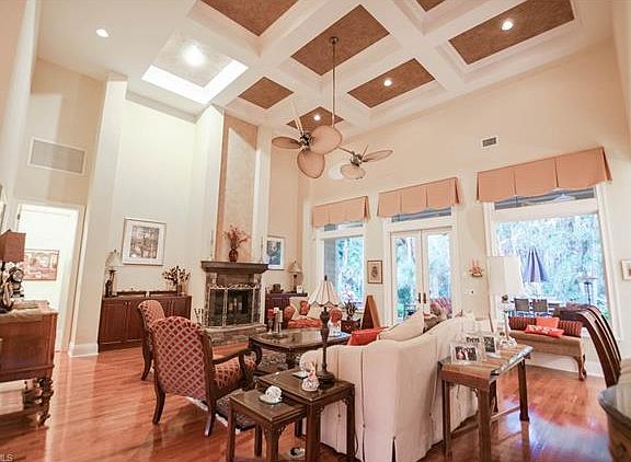 STUNNING, AFFORDABLE AND READY TO MOVE IN! EXCELLENT CONDITION....WELL MAINTAINED. This home is gorgeous and is loaded with upgrades. Decorated elegantly, has beautiful hardwood floors, soaring tray ceilings, Silestone counters, natural gas appliances, an interior fireplace and the large master suite is located on the first floor. Plantation shutters outline most of the hurricane rated windows, custom built ins and the upstairs offers a serene oasis for your guests including a second level balcony. There are 2 bedrooms and baths upstairs and a rec room (man's cave) with a mini kitchen and wet bar. The outdoor porch is huge and has an above ground hot tub with plenty of privacy. Mature landscaping, beautiful trees all on a lot convenient to the club house, tennis courts and fitness center. Verandah offers 2 championship golf courses, a great tennis program, 9+ miles of biking and walking trails and even a doggy park for man's best friend. Only minutes to the Caloosachatchee River where you can enjoy fishing, boating, wave runners and skiing. Happening downtown Fort Myers is only 6 miles west of the front gate.