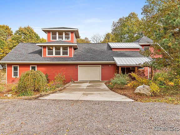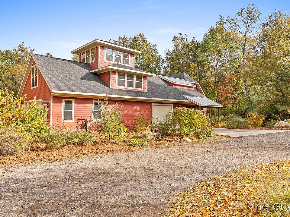 Custom Built in 2016 this home has it all! 3 private, wooded, serene acres, Beautiful, high end, fully custom-built, builder's own home with all the trappings. 1400 SF Heated and Insulated 4 stall attached garage. Second 3 stall heated and insulated garage/workshop. Custom woodwork, paneling, trim, built ins, cabinetry, solid doors, Low-E windows, flooring, in floor water-heated floors, hardwood paneling, staircase and railing: All custom built and installed by top-craftsmen. With a master and laundry on main! High end kitchen with granite countertops & all newer stainless appliances. Premium Pellet stove option for heat, and retrofitted with brand-new forced Air/AC as well. Huge Rec area above garage with great view off balcony and a one of a kind Thunderstorm and star gazing room! 2 bedrooms on the main side of the home with their own balcony and bath, and one room has a secret hideout/reading/gaming room, or enormous closet space. Outside has a fenced in back, tons of privacy and trees, a huge 2 story custom fort/clubhouse, a covered front porch with swing and lovely garden views. Great location between Rockford and Cedar Springs, 3 Mins to 131, 15 minutes to downtown GR!
