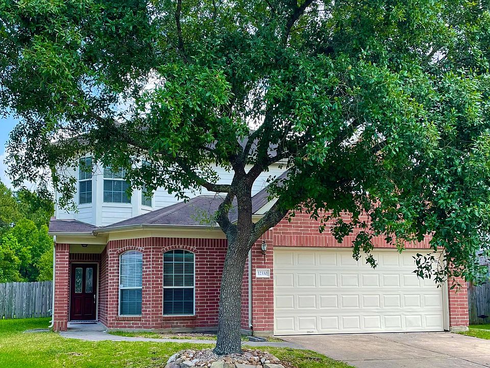 Beautiful open floor plan with tile floors in living, kitchen and breakfast areas. Corner gas log fireplace with remote control lighting. Plantation shutters, blinds and ceiling fans. Kitchen has Corian countertops, tile backsplash and lots of counter space Refrigerator is included. Formal dining and breakfast rooms. One bedroom with full bath downstairs. Two full baths upstairs with large game room. Master bedroom has bay window and built-ins. Huge cul-de-sac lot with two patios and sidewalk to front yard.