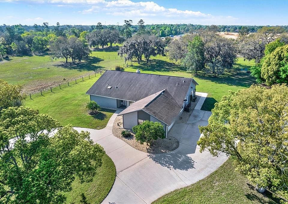 This pristine, fully fenced 10-acre property offers endless possibilities with a beautifully updated home, separate 1,000 SF building with HVAC and plumbing, large barn with roll-up door, pole barn and out-building – all with electrical service! The 3-bedroom, 3-bathroom home plus office features over 2,700 square feet of living space with an ideal split bedroom floor plan! Upon entering the home you are greeted by views of the spacious living area, vaulted ceilings and French doors highlighting the patio and yard beyond. The well-appointed kitchen showcases stainless steel appliances, 42” cabinets with crown molding, granite countertops, center island and breakfast bar all overlooking the dining area featuring a gorgeous picture window. The primary suite is complete with vaulted ceilings, bamboo flooring and French doors leading to the covered patio. The en-suite bath with double sinks, expansive walk-in super shower with soaking tub, plus laundry and oversized walk-in closet make this primary bedroom feel like a private sanctuary. The two additional bedrooms and bathrooms are situated on the opposite side of the home. Adding to the functional floor plan is a private office tucked at the front of the home and additional mudroom (can be used as second laundry area) off the kitchen leading to the attached 2-car garage. Enjoy your morning coffee on the covered back porch overlooking your thoughtfully landscaped yard with mature grand oaks, firepit, seating areas and pasture beyond! A 1,000 SF (28 ft. x 36 ft.) building with HVAC, plumbing, carport, and double doors is ideal for a woodworking shop, car enthusiasts, or man cave! A metal barn (22 ft. x 28 ft.) with roll up door offers a great place to store boat or larger equipment, while the pole barn (20 ft. x 25 ft.) is great for horses or livestock, and an additional out-building (22 ft. x 20 ft.) is ideal for storage or a great tack room. The property is currently separated into two pastures and yard area. Additional amenities include 2nd gated entrance, 30-amp RV hook, fully irrigated yard and drip line to portions of pasture area, and generator hook up on main meter box. This property is truly turn-key and ready for its new owners! This gem is situated just minutes from the Suncoast Parkway, shopping, dining and entertainment along Cortez Blvd and Weeki Wachee offering the best of both worlds with ultimate privacy and easy access to everything. No detail missed - bring your horses and outdoors toys and make this beauty your home sweet home!