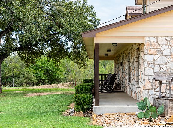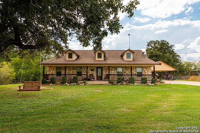 Located in Atascosa, Texas, this Black Creek Ranch features 18 secluded acres for sale in Bexar County along Pearsall Road. Nestled within the ranch is an attractive twelve-year-old 2,150 square-foot rock home. The home features four bedrooms, two bathrooms, a custom kitchen, open concept floor plan, a large back patio, peaceful sitting area, and an attached carport. An above-ground swimming pool and spacious deck adds to the private enjoyment of "at home" country living. The large backyard has a raised garden and hen house ensuring lots of fresh vegetables and farm fresh eggs! A 40' x 54' barn provides cover for the farm vehicles and equipment, as well as hay and feed storage. It also includes an enclosed 12' x 20' shop with a walk-in cooler. The property is divided and cross fenced for cattle grazing. There is one six-acre field reserved for hay production where hay grazer is planted in the summer and oats are planted in the winter. The owner leases an attached 90 acres for cattle grazing and hunting. This lease may be available to the new owner. The pasture and hayfield are irrigated via the Bexar-Manda-Atascosa irrigation district, and water rights are transferable to the new owner. With notoriously hot and dry Texas summers, having irrigation water allows for longer grazing time and the ability to make a hay crop. Currently, the ranch handles 18-20 head of cattle and is AG exempt from taxes. The seasonal Black Hill Branch flows in good rain along the southern and southeastern borders of the property and is an area of dense brush and big timber providing privacy and a sense of security across the backyard area of the home. The area is also home to whitetail deer, turkey and other wildlife. A turn-key ranch this close to all the amenities of San Antonio yet enjoying the benefits of ranch life and peaceful serenity is a rare find. Southwest I.S.D. Minerals are negotiable.