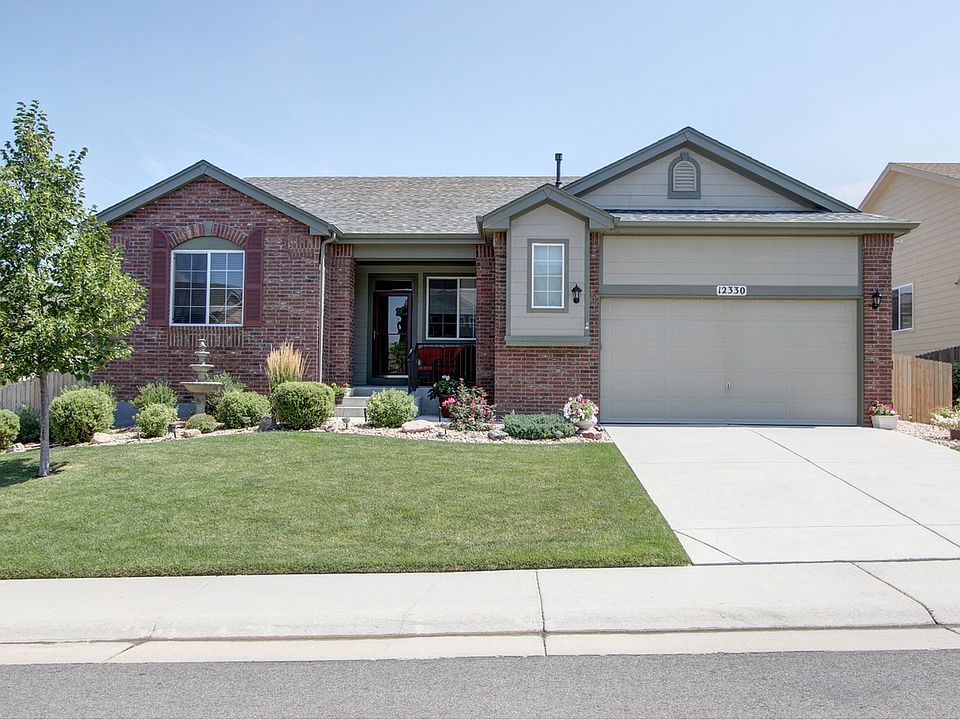 Popular single-family, ranch-style home with unfinished basement! Your future home offers 4 bedrooms (one can be a formal study), and 3 bathrooms. Formal Dining Room with butler's pantry to spacious Kitchen. Kitchen features gorgeous granite-slab countertops, stainless-steel appliances, casual eat-in dining area, and large center island with additional seating x4. Open layout is ideal for entertaining friends and family! Family Room has a gas fireplace for those chilly Colorado winters! Main-floor Master Bedroom with private 5-piece bathroom and large walk-in closet. Roomy covered front porch is perfect for relaxing after a long day, or enjoy the privacy of your landscaped back yard with patio! Unfinished basement is waiting for your personal touch! Fantastic home! Quiet neighborhood! Call now to schedule your personal showing! Agent commissions are always negotiable! Don't miss out on this beautiful home because of the unconventional commission! Ask your agent or call TRELORA for more details
