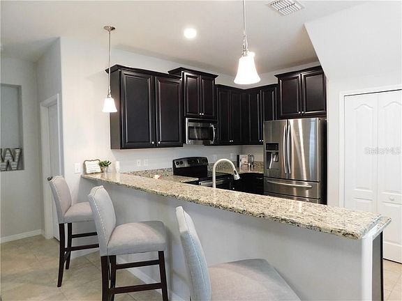 Your search is over! This meticulously maintained, 4 bedroom, plus a separate office, 2 ½ bathroom, pool home, shows like a model. Sellers just completed putting in a gorgeous saltwater pool with a waterfall, enclosed with a bird cage and pavers to a cost of $58,000. The upstairs bonus room is huge measuring approximately 18' x 17'. A kitchen that is a cook's delight with granite counters, pantry and a breakfast bar leading to the open great room. The open and spacious great room has a door leading out to the lanai and pool. A large master bedroom is located on the first floor with a walk in closet and a pool door leading out to the pool and lanai and dual sinks in the master bathroom. Beautiful curb appeal with pavers around the landscaping, an expanded driveway, new A/C (2020), outside was freshly painted (2020), a fenced backyard, NO CDD fees and located in a NON FLOOD ZONE are added bonuses. HOA fees also include trash. Schedule your showing today to see this hidden jewel before it's gone.