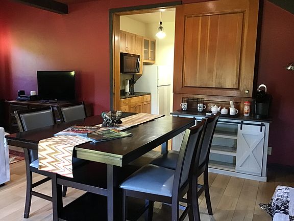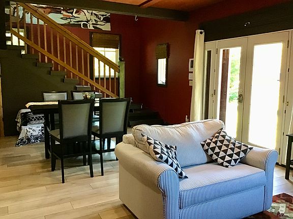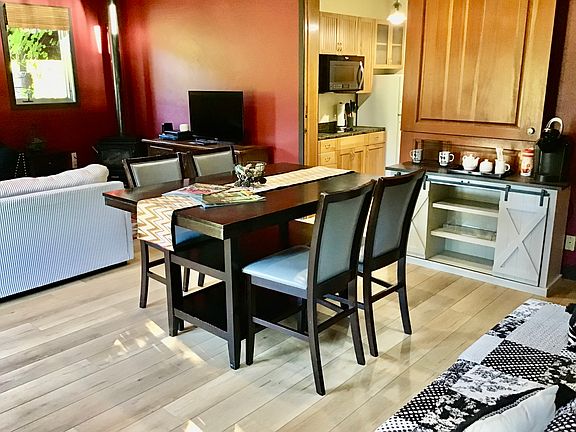 Spacious and private studio with loft bedroom. Furnished, with fireplace, lots of windows and skylights. Utilities included. One garage parking space. There are nice views and a garden area. Utilities included are propane, electricity, water, Dish satellite TV and Hughes Net internet. The property is surrounded by Redwood National Park with direct access to Park trail system. This is a first floor unit. Upstairs is retained as the owners home and is rented as a short term vacation rental. The living spaces have separate entrances on different sides of the building. The property is available on month to month basis. Owner pays utilities- propane, electric, Dish TV, Internet, water, gardener. All utilities, except trash which would need to be removed by tenant no less than once a week. Wired for landline phone. No smoking. Perfect for one or two people. Available on or after August 25, 2025.
