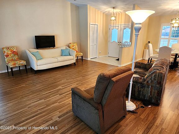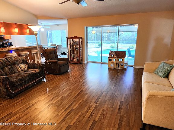 Spring Hill 2 Bedroom Pool Home 2 Full Bathrooms And A Oversize 2 Car Garage- Enter The Home Through The Dual Door Entry- Tile Foyer- Coat Closet- Formal Dining Room With Plantation Shutters, Or Can Be Used As A Den Area- Great Room With Vaulted Ceilings And Pocket Sliders To The Porch And Pool Area- Tiled Eat In Kitchen With A Trey Ceiling, Breakfast Bar And Dining Nook, Dual Sinks, Newer Stainless Steel Dishwasher And Garbage Disposal Plus A Pantry- The Master Bedroom Has Plantation Shutters, A Walk In Plus A Double Closet, Dual Sinks And A Tiled Shower With Grab Bars- The Guest Bedroom Also Has Plantation Shutters- Private Yard And A Oversize Porch- Extras Include Newer Ceiling Fans, Smart Box Panel, Interior Painted, Lighting Fixtures, Pool Remarcited, Roof 2012, Air Replaced 3 Years Ago per seller, Garage Door 6 year Warranty, Wired For Security, Pool Heater, Double Pane Tinted Windows, Water Softener, Inside Laundry Room, Garage Has AC Vents- Open Floor Plan Call Today For a Showing.
