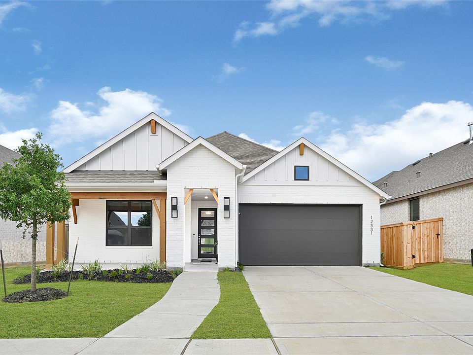 Welcome to 12331 Palmetto Dr in Mont Belvieu! Beautiful 4-bedroom, 3-bath home with an office, combining modern design and comfort. Bright open-concept layout with spacious living room, elegant dining area, and chef's kitchen featuring quartz countertops, large island, stainless steel appliances, and great storage. The primary suite offers a spa-like bath with dual vanities, a soaking tub, and a walk-in shower. Secondary bedrooms include a Jack & Jill bath and generous closets. Enjoy a fenced backyard with a covered patio, perfect for relaxing or entertaining. Great location near shopping, dining, and schools. The refrigerator will be replaced with stainless steel before move-in.