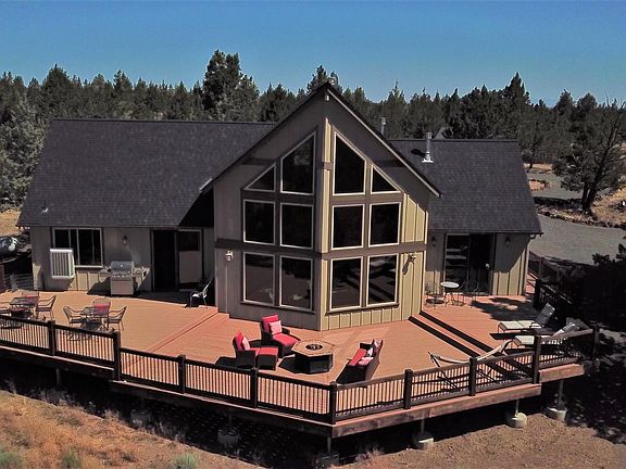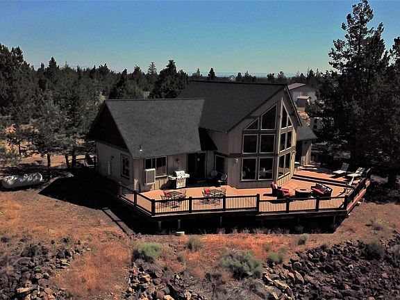 Stunning custom built N/W Traditional home on 5.8 acres w/panoramic So. views of The Sisters & much more. From the handcrafted solid wood cabinets throughout to the high-end plumbing to the expansive decking, this property has it all. The chef's kitchen is amazing w/corner windows above sink for those views & 2'' thick, raw edge granite counters & the abundant cabinetry make food prep a pleasure. The open concept from the kitchen thru the dining area to the sunken living-room w/floor to ceiling rock fireplace are perfect for intimate gatherings to large family events. The primary bedroom is a true oasis w/custom built-in corner cabinet to house your media & a 2nd fireplace along w/slider to that massive deck are essential for true peace & quiet. Triple closets & a 4 pc. attached bath w/walk-in shower & slate floors further accentuate this homes' thoughtful amenities. This is a must see. Please read attached amenities sheet for additional info