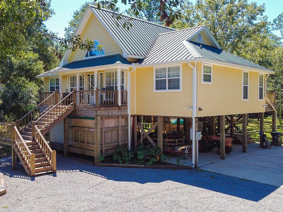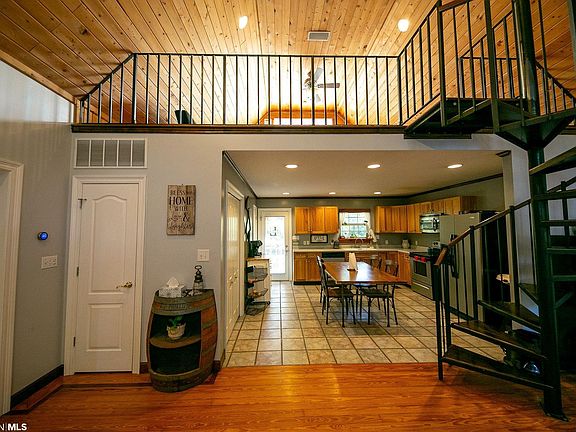 Very nice home with almost 2 acres on Sandy Creek. Open floor plan, beautiful wood floors, tongue & groove cedar ceilings. Spiral staircase to the loft. Metal roof, storage shed, split floor plan, bath with separate shower and tub, and a nice sized deck off the master bedroom. Beautiful private lot overlooking Sandy Creek.