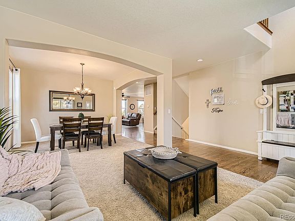 Look no further—this stunning home, inside and out, is ready for you and won’t disappoint! At the top of the hill in the highly sought-after King Ranch Estates, this home offers unobstructed morning sunrises and convenient evening exercise with a bike path directly behind the home which leads to downtown Denver. Relax in the peaceful backyard around colorful perennials, and enjoy your beverage on the covered patio near the pond- dual pump and ready for Koi or other fish. Inside, the formal dining and sitting rooms are perfect for entertaining. Just beyond, the home opens up to a cozy family room and a chef's dream kitchen. The kitchen includes granite countertops, a 5-burner gas stove, double oven, spacious breakfast nook, and additional dining space, all with beautiful eastern views. The main level also includes beautifully maintained hardwood floors, garage access, a home office, and a guest bathroom. When it’s time to unwind, escape upstairs to the primary bedroom, a spacious retreat where you can create your own cozy reading nook or exercise corner. Take your time getting ready in the luxurious 5-piece bath. The suite features a convenient bar area with sink, perfect for a personal coffee station, wine bar, or extra storage, in addition to two closets. You will also find an ensuite guest bedroom, as well as two additional bedrooms with a shared bathroom with separate vanities, making it ideal for busy mornings. The basement offers even more space for relaxation and entertainment, featuring a large rec room, two additional bedrooms with a shared bathroom, and an extra room perfect for storage. Plus, with the spacious 4-car garage and built-in cabinetry, you'll have plenty of room to organize your tools, projects, and hobbies.