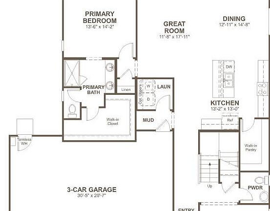 The Elderberry on lot 57 is expected to be ready February 2025. This home is 2,380sf 3-bedroom + Study + Loft, 2.5-bathroom, 3-car garage and sits on 7,875sf lot facing North. This Elderberry plan boasts ample space for entertaining. On the main floor, you'll find 9' ceilings, 8' doors, square corner walls, center-meet sliding doors at the dining room leading to the covered patio, open dining area, an expansive great room, a convenient laundry and a well-appointed kitchen with a quartz countertop center island, 42'' white upper cabinets, GE stainless steel appliances including side by side refrigerator, 30'' gas range, microwave, dishwasher and walk-in pantry. An impressive primary suite, located just off the great room, showcases an immense walk-in closet and a private bath as well as additional bedroom and full bathroom downstairs. Upstairs, discover an airy loft, a storage area and two secondary bedrooms with walk-in closets. This home has additional features such as ceiling fan prewiring in bedrooms, 7"x22" tile flooring throughout the home with carpet in the bedrooms and stairs, front yard landscaped, pavers in the driveway, walkway and entryway, 8' garage doors, service door in the garage, tankless water heater, pre-plumbed for soft water loop and gas stub at back yard.