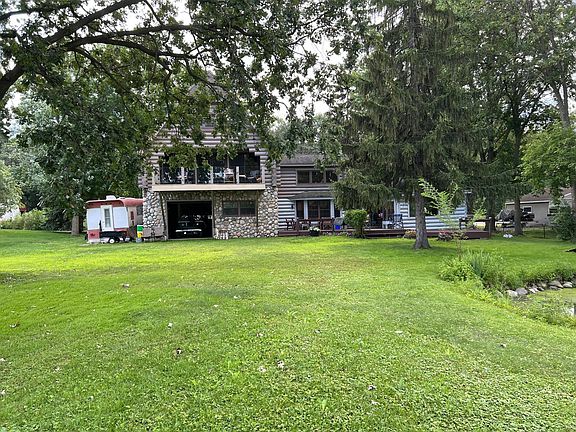 Incredible opportunity to live on beautiful Orchard Lake just south of the cities. Come see the stunning views from this home. Your own 112 feet of lake shore with a completely flat lot! Private peninsula on the south side of lake . One-of-a-kind home with one of the best lots on the lake. Original home was added onto with a tuck under garage & another two floors with true log cabin walls and vaulted ceiling. Second floor has a family and bedroom along with another bathroom. Open 3rd floor has space on both sides of the wood staircase and has been used as an artist studio and two