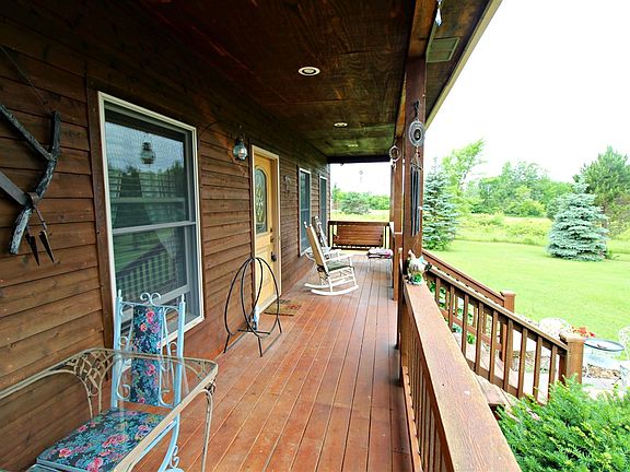 Lush wooded 16 acres extends to Demond Rd. in rear with wildlife galore. 32x28 pole barn for horses or storage with 15 ft ceilings & loft. Main floor master suite w/private whirlpool bath, walk-in closet & main floor laundry. Floored/drywalled walk-in attics. Merillat hickory kitchen with all appliances & hardwood floors. Side load oversized garage. Beautiful cedar exterior (restained 2017). Covered front porch deck & full rear deck. Newer roof, furnace & water heater. Andersen windows. Extra blown insulation. Seller will provide HWA Platinum 13 month Home Warranty.