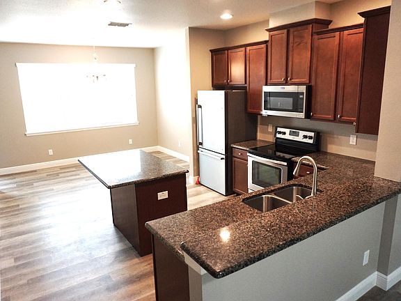 Beautiful and spacious 3 bedroom 2.5 bath townhouse with new paint and vinyl plank flooring throughout the entire home. This well maintained open floorplan home features a large kitchen with shaker cabinets and granite countertops. All bedrooms located on second floor and there is a built in desk to use for a home office with plenty of storage space. You will love the fenced space between the separate two car garage and home. It is perfect for entertaining. The lovely community offers a community pool, biking and walking trails. This prime location nestled at the back of the community is quiet but close to shopping, dining, entertainment, and main highways. This home is very close to work for any Disney employees. Small pets up to 20 pounds are acceptable