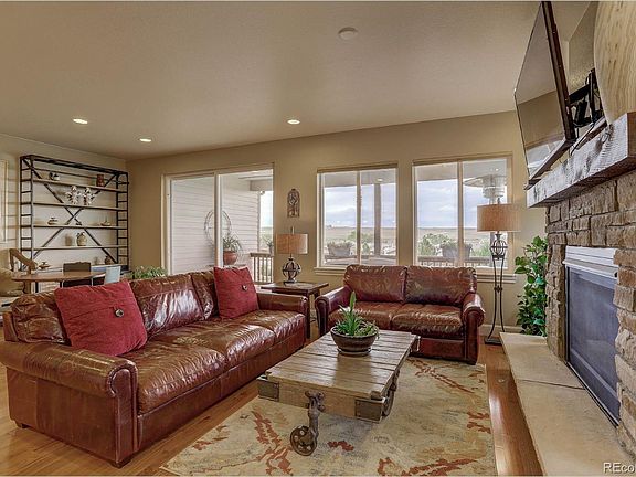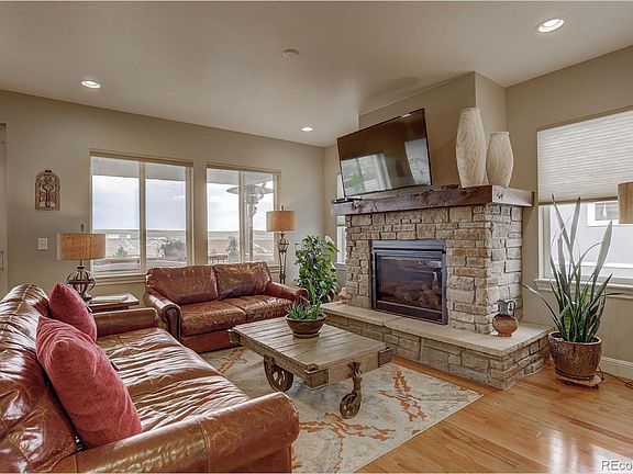 Amazing Views from deck & family room in this popular Flatirons model. Enjoy sunsets & the majesty of Mother nature in all seasons. Kitchen features maple cabinetry, custom stone tile back splash, stainless appliances. Hardwood floors throughout main living area. Relax on the covered deck protected from the elements. Master bedroom offers views also, spacious shower, double sinks & walk in closet. Full walkout unfinished basement. 55+ neighborhood with beautiful clubhouse, fitness center, swimming pool, pickleball courts, & full time Activities Director.