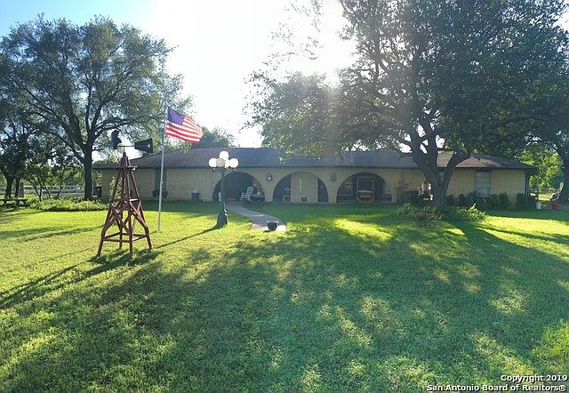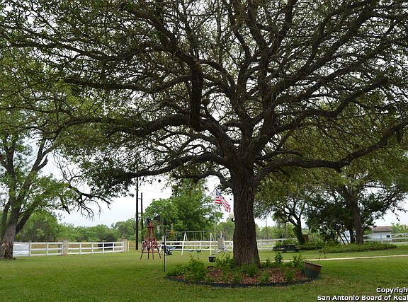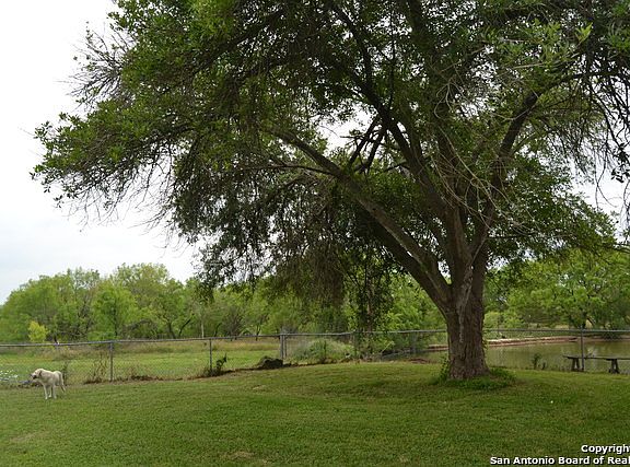 Quiet country living minutes from Loop 1604, HWY 90 & IH35! 6/3 house on 10+ acres scattered with numerous mature oak trees, 20x27 barn, chicken coop, second 3/2 1334 sq ft house that could serve as additional income from renting or have a family compound. Enjoy your own private fishing in your pond. BMA Canal runs along the property with irrigation rights. NO Restrictions. Oversized screened in porch (15x33) with hot tub. SOLD AS IS -- Seller is Motivated!!!