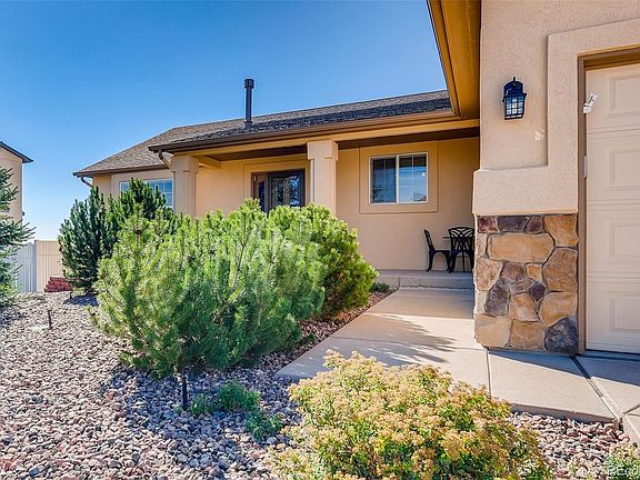 A meticulous ranch home in a highly desirable Woodmen Hills Community with finished full basement. Open layout and abundance of natural light throughout the house including the basement. This stunning, 5 bedroom home will take your breath away from the moment you walk in! Owners take great pride in the house and shows it is well-cared for inside as well as outside. All bedrooms and living room are pre-wired for ceiling fans, kitchen has gas stove and newer Samsung appliances as well as extra long eat-in counter. The house and living room are similar to a solar home, winter sun comes through the living room windows and keeps it warm in winter. During the summer, the sun is directly overhead, with less heat buildup in the living room. Dining room is openly joined by the living room with fireplace and vaulted ceiling, as well as large windows and walks out to the full wood deck, 15 feet by 26 feet, floor and railings were newly repainted. Deck includes three-person metal swing and newly installed gazebo provides shade on the deck during the summer, not to mention the patio table with six chairs. Fenced-in backyard has eight raised vegetable beds - 4 feet by 8 feet each and center planter area has five-foot water fountain with electric pump. There are fruit trees: peach, apple and pear. Stucco exterior and trim are newly repainted, roof shingles are upgraded class four (improved hail resistant). Spacious 3-car garage has a side door for easy access to the backyard and another door to the laundry room with utility sink. Newer 50-gallon gas water heater and already installed security system. Outside has two dedicated electric outlets for Christmas lights, east side and west side of house. Close to Peterson AFB, Schriever AFB, dining and shops. The Woodmen Hills community features include two clubhouses with fitness rooms, parks and indoor/outdoor pools. Schedule your showing today!