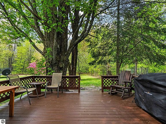 Charming 3-Bedroom Home Near the Manistee River – Perfect Up North Retreat! Located just half a mile from the Manistee River and Rainbow Jim's access point, this 3-bedroom, 2-bath home is ideal for outdoor enthusiasts who enjoy kayaking, canoeing, fishing, and exploring hundreds of acres of nearby state land. Whether you're looking for a serene year-round residence or a peaceful getaway, this property fits the bill. The recently updated lower level features a new bedroom, full bath, and spacious recreation room—perfect for guests or family gatherings. Upstairs, an open floor plan includes a loft bedroom, main floor bedroom and bath, an island kitchen, and a living room with soaring cathedral ceilings. The main floor is ready for your personal touch to complete the updates and TLC to make it your own. Step outside through the sliding door to a large back deck overlooking a private yard adorned with flowering trees, fruit trees, a chicken coop, and a shed. Choose between propane heating or an outdoor wood boiler for added flexibility. Conveniently located just 30 minutes from Traverse City and 25 minutes from Cadillac, this home offers the perfect blend of seclusion and accessibility.
