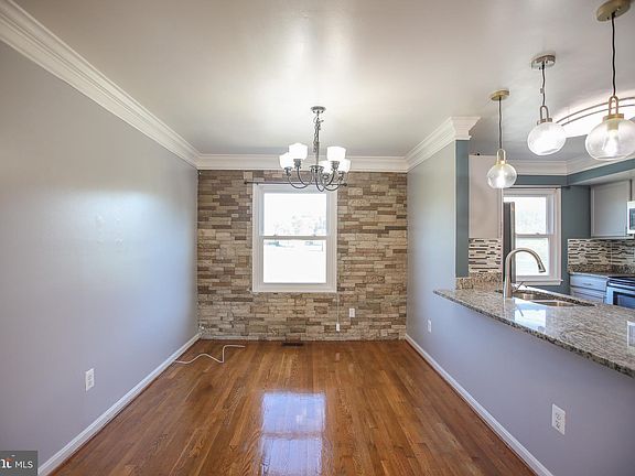 Modern backsplashHardwood floorsCrown moldingFenced backyardNatural lightGenerous closet spacePendant lighting