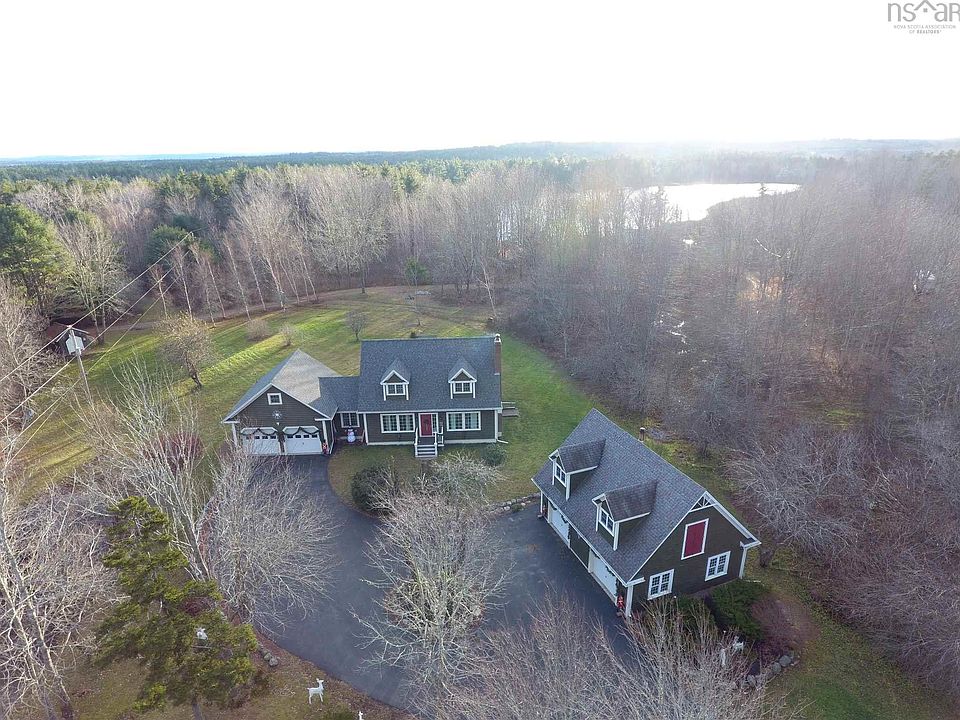 Your Dream Home awaits!! This Gorgeous, Quality Built, and Well Maintained property is being offered for sale for the first time, so this may just be.....Meant To Be! Built by one of the South Shore's Finest Builders, who is known for his quality work and attention to detail is this stunning 3 Bedroom and 2 Bathroom Cape Cod Home. This property has the most amazing curb appeal you will find, with it's winding paved driveway, park-like yard with the most amazing pond and mature trees, and not only an attached 2 car garage, but a huge 2 storey, detached 2 car garage/workshop! Both garages have lofts above them and the attached garage offers an incredible private office space above it with an outside entrance. This Home was built with family in mind with a beautiful Kitchen with tons of cupboard space, the most incredible Living Room(s) with Fireplace, a large Dining Room, and a cozy little Den off the Kitchen for an office or just a little getaway for parents. Upstairs you will love the winter views of the Lake, the Huge Primary Bedroom with 2 large Closets, Full Bath, and 2 other stunning bedrooms. The partially finished basement offers a spacious laundry Room and a Rec Room, as well as tons of storage and a walk out to the Amazing and Private backyard. The location does not get any better than this as you are within 10 minutes to both Lunenburg and Bridgewater, walking distance to a beautiful Lake, in one of the most highly sought after school districts, and a huge private yard that Friends and Family will love to gather in, and kids and pets will feel safe. Properties like this are a very rare find so call and book your viewing today. Your family will thank you for it!