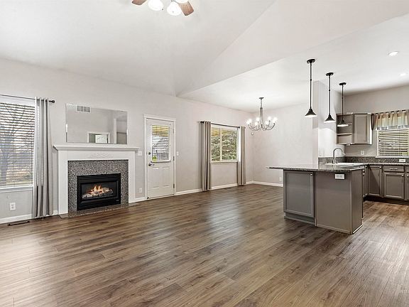 Beautiful well cared for home by the original owner. Open floorplan space with vaulted ceinglings in living room, gas fireplace, quartz counterops and stainless stell appliances in kitchen. New deluxe vinyl flooring throught with vaulted ceilings in each bedroom as well. Washer/dryer and refrigeratored included and newly painted exterior home. Mature landscaping with covered patio and fully fenced backyard and built in shelving/racks in the garage. Location is key - close to Costco, downtown, the freeway and more. HVAC, water heater and roof all replaced in 2020 and comes with warranty. Must see all this home has to offer. BTVAI.