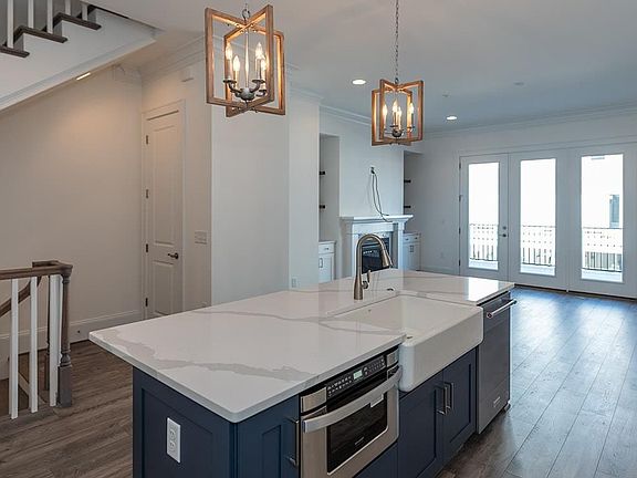 The Park is a 4 story luxury townhome with 2-car rear load garage.. Owner's Suite with Optional Master Bath that includes a freestanding tub. Rear facing covered terrace with brick fireplace and NanaWall, creating the perfect place for entertaining for relaxing. Custom made 42" painted cabinets in Kitchen, stacked to ceiling. Luxury laminated flooring throughout main living and Owner's Suite. Elevator from first floor to fourth floor. Quartz countertops in Kitchen and full bathrooms. Stainless steel KitchenAid appliances with dual fuel 4 burner commercial range.