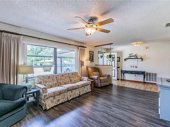 Welcome to this move-in ready pool home sitting on a half acre lot! From the entrance of this home, you are greeted by its modern floor plan, abundant natural light, and large living spaces. The home features a family and dining room that are connected with new flooring throughout. The kitchen has a huge breakfast bar, updated appliances, and ample cabinet space. The home is a split plan allowing for privacy in the master suite that includes a walk-in closet and sliding glass door access to the outdoor entertaining area. The secondary bedrooms are spacious and have large closets and a bathroom between them. Where this home truly stands out is its expansive patio and pool area. With room to entertain guests, this space extends the functionality of the home; you can open up the sliding glass doors and enjoy quaint views of the backyard. With such a large lot, there is room for RV parking, space for the kids to play as well as a fire pit. Conveniently located to major roadways you are close to shopping, restaurants, and medical facilities. You are also just a short walk to the school bus stop and a quick bike ride to Veteran's Park.