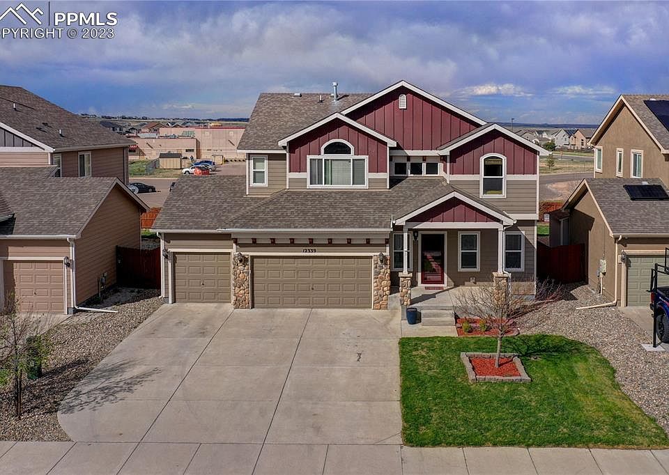 This beautiful home has space to meet everyone's needs. If tinkering, gardening or projects are a priority, the 4 car garage creates extra space for a workshop to organize and manage the plan. The kitchen, entertaining, and dining area flow together to create memories that last a lifetime. Majestic mountain views from the master are a fantastic way to start any day. The 5th bedroom is located in the basement across the hall from one of three full bathrooms. Everyone can pick the space that works best. If working from home is an option, the main level has a light, bright, comfortable office. Head outside to the backyard which is ready for summer including planting beds with peonies, a large composite deck for a BBQ and grass for a great game of catch or fetch. Tired of that long line at the elementary school? Meridian Ranch Elementary is a stone's throw away. There are so many possibilities to call this house a home. Additionally, Meridian Ranch offers many activity opportunities at the rec center as well as walking paths, a dog park and so much more.