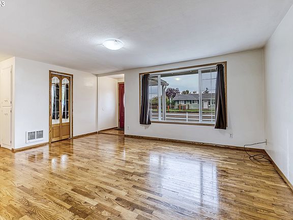 *** OPEN HOUSE SATURDAY, FEB 17 FROM 10AM - NOON!*** Quality and convenience! This charming home boasts excellent curb appeal and an ideal location right in the heart of town, ensuring effortless access to everything Springfield and Eugene has to offer. Step inside to discover beautiful oak hardwood flooring, adding warmth and comfort throughout. The common sense floorplan flows perfectly and makes daily living a breeze. Pass through the dining and spacious kitchen to reach the sprawling backyard, which offers a private oasis for relaxation and outdoor activities. Picture yourself enjoying leisurely evenings or hosting gatherings in this inviting space. The large, covered back patio is just begging for outdoor furniture, a hot tub, outdoor heaters or fire pit. The yard also features a small outbuilding which could be easily made into a peaceful, quiet home office. A gate to the side of the garage could also provide additional storage or parking for a small RV, trailer or camper. Need more space? The partial garage conversion is currently set up to make this home a 3 bedroom, but could be converted back with minimal effort for additional storage and parking. This home is spotless and ready for you to move in and call home. Call for a showing today!