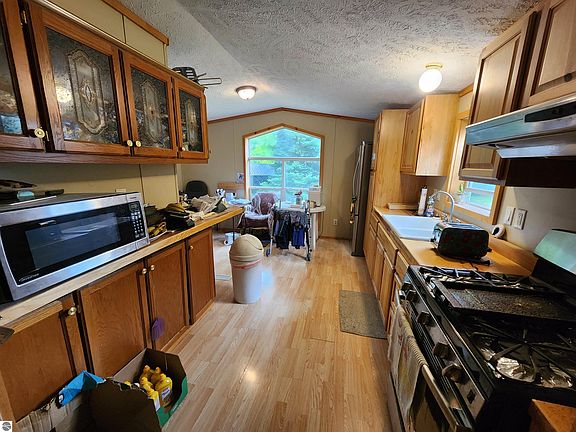 Cozy 2 bed, 2 bath home tucked away on a wooded 4 acre parcel. Highlights of this house are its massive walk-in pantry, separate laundry room, ample kitchen cupboards, and spacious private master bathroom. The primary 1-car garage has a concrete floor and electricity. A 2nd 1-car garage provides additional room to store toys or tools. Conveniently located in close proximity to thousands of acres of state land, numerous lakes, and many outdoor recreation opportunities, this would make a great place to call home or use as your up north retreat. This house has been moved so it will only qualify for cash or a portfolio loan. Sold as-is. Sale subject to court approval.