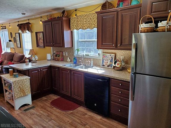 Beautiful views and privacy on a quiet road just 3 miles from I-77 and 4 miles from the Blue Ridge Parkway. This modular inspired home offers vinyl siding, shingle roof with guttering, drywall and crown molding throughout, solid doors, conventional ceilings and tilt windows. This spacious home has 3BR 2BA with open kitchen, dining and living room area with espresso finish cabinetry. Many new additions including; tiled shower/tub combo, new sink fixtures and lighting, landscaping, refinished porch and deck, new roof over back deck, refrigerator and stove. New 10 x 16 Leonard’s Salt Box style building, insulated, drywall and electrical with lighting. Great for additional guests, an office space or many other uses.