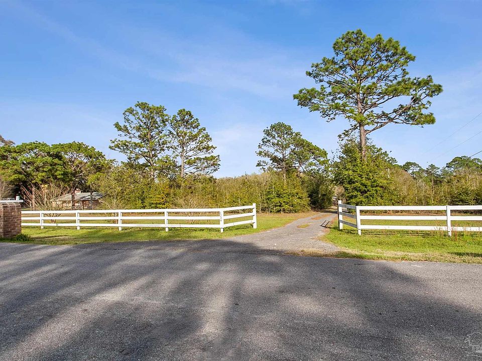 Country living on 3 Acres but convenient to everything in Cantonment. This Custom built home in 2019 with 9’ ceilings has everything you need in this well maintained ranch home complete with a large wrap around wooden deck overlooking your 3 acres complete with a creek. Enjoy piece of mind of living in the country with a large detached garage and property large enough to store all your boats, RVs, and toys. With the 2019 Roof, Water Heater, HVAC, and all the other appliances this one should be carefree living. The hurricane window treatments and recent construction should qualify for the best insurance rates.