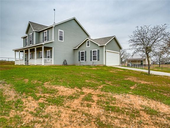 2018 Custom 2 story home on 5.5 acres. 4 bedroom, 2.5 bath. Master bed, bath is downstairs. Custom cabinets, flooring with granite countertops. 2 Car garage. Front and back porches covered for enjoying the country life. Gated private road. Completely fenced and cross fenced, ready for horses! Barndominimun is 30x30, fully insulated with 10' covered porch on front and back. 1 bedroom with 1.5 bath and kitchen. Can be used as MIL home, rental, bed and breakfast, office or workshop. Horsebarn is 20x20 with concrete tack room. Property has beautiful oak trees for shade with plenty of pasture for your horses.