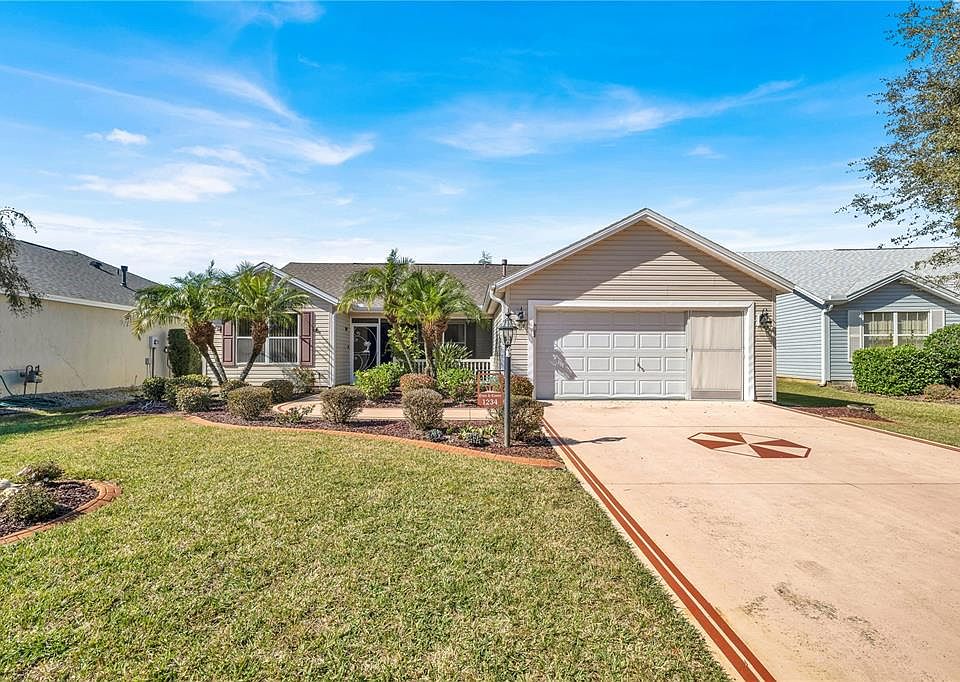 LOCATION! LOCATION! LOCATION!!! Roof 2020, AC 2021 and Water-heater 2019. This lovely Bougainvillea model is situated less than a mile and a half from the popular Sumter Landing. NO BOND!!! Welcome home to this 3-bedroom, 2-bathroom thoughtfully designed split floor plan offering the perfect blend of privacy and togetherness. As you pull up to this home, you'll be greeted by beautiful and mature landscaping and picture-perfect curb appeal. Inside, enjoy high ceilings, New SS appliances, a GAS stove, and natural gas. The master suite offers his and her closets with dual sinks. Both guest bedrooms have closets. Minutes away from pools, rec centers, executive golf courses, pickleball, minutes from Sumter Landing Market Square & shopping & dining – ALL EASILY ACCESSIBLE BY GOLF CART. Did mention, NO BOND! Make this home a MUST SEE. Call TODAY for a private showing. Bedroom Closet Type: Walk-in Closet (Primary Bedroom).
