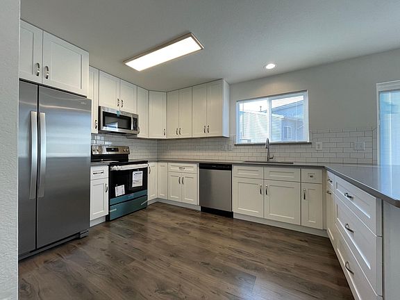 Completely remodeled 4 bedroom 2.5 bath home in quiet neighborhood. Located close to shopping and dining. Here are a few of its wonderful features: new custom kitchen cabinets, new stainless steel appliances, new Caesarstone countertops, vaulted ceilings, cozy gas fireplace, new finished basement bedroom/rec room, fenced backyard, new concrete back patio, new automatic sprinkler system, new light fixtures and celling fans, new window coverings, freshly painted interior. Walking distance to parks and schools. Two car garage with automatic garage door opener. Lease term negotiable - terms less than 12 months are $2,900 per month. No smoking inside the house or garage. Pets are negotiable with an additional fee if approved. Tenant to pay for all utilities.