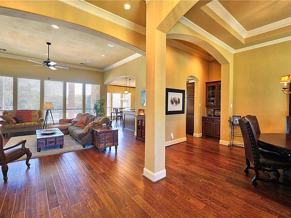 Elegant custom one story home with detailed craftsmanship nestled in the heart of Keller, close to Town Center, parks and trails. Fall in love with the beautiful view of the backyard from most rooms in the home. Luxury amenities include granite counters, travertine and hand scraped wood floors, exquisite millwork throughout, plantation shutters and Austin stone fireplace. The Master is a true retreat with new carpet, fresh paint His and Her's walk in closets, glass and travertine double shower and large bubbler tub. Spacious backyard with privacy landscaping. Interior and Exterior full home stereo system. Refinished back patio and pool deck will delight! Perfect for year round entertaining.