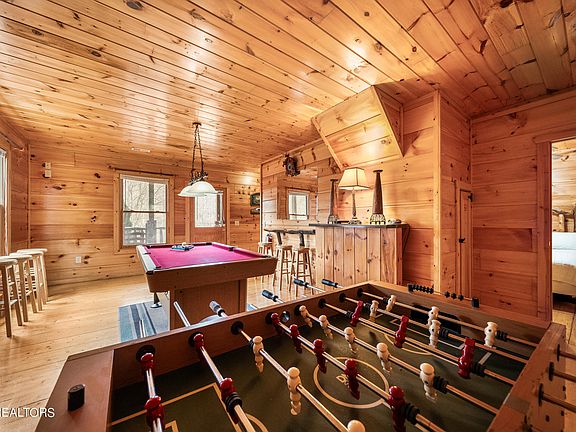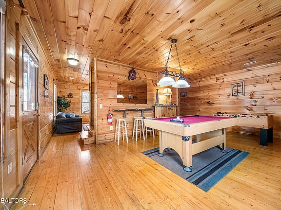 2 Bedrooms with a loft, currently rents as a 3 bedroom, could sleep up to 10 people. Check out this classic cabin in the woods tucked just perfectly between Gatlinburg AND Pigeon Forge AND the Smoky Mountain National Park!! Map it and see. Totally private too, with walking access to 2 large ponds and tons of flat common area directly across the street. This space feels like having your very own private park to throw the ball around or any other backyard activity. Very private. Major benefit to whoever owns this property! Catch a fish with the little ones or take it easy on one of the relaxing decks, complete with hot tub! Super convenient ''loop around'' driveway means no backing up on scary mountain roads. Just in and out. Easy! Now, step inside this classic cabin to enjoy all the features like the bonus room and the game room which could easily be converted to a theatre room. Use your imagination! Then, head upstairs to the great room with magnificent, vaulted ceilings and windows for days! Soak up the wooded view or warm up next to the fireplace. Very nice and open kitchen allows everyone to interact and build great vacation memories. The spacious master is just across the hall and includes a jetted tub, stand up shower and convenient bathroom. Onward to the loft! Big Ol bed with a view of the trees and your own bathroom with a standing shower. Washer and dryer are easy to access here too! This cabin is a great turnkey, set it and forget it or make it a jump-off point for an incredible earner! Get creative and see what possibilities you can unlock. Schedule a showing today! Drone photography is used in this listing.
