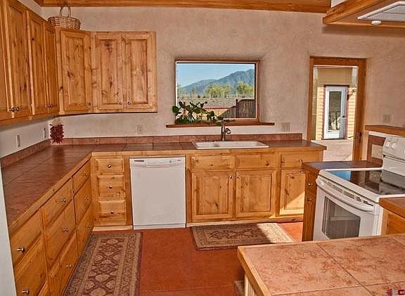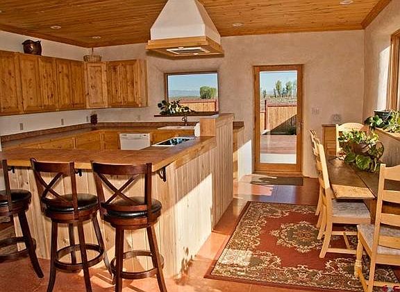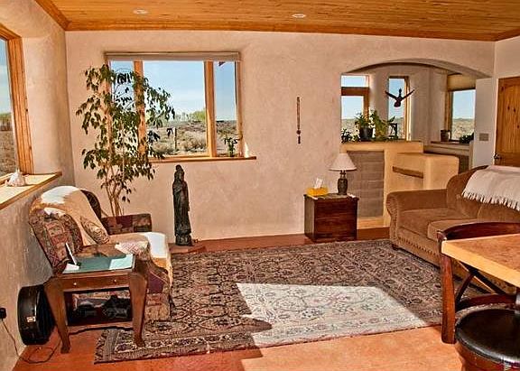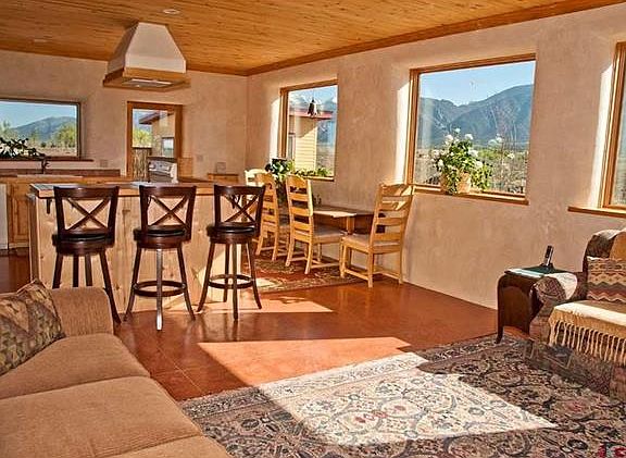 This strawbale 1831sf 3bd/2ba home with detached studio on 1.86 acres has magnificent views and fine finishes w/diamond plastered walls, touches of adobe block, builtins. There is an entry area with adobe bricks, bench, arch and windows that invites you into the home. An open floor plan with built-in shelves and arches in the living room makes for easy entertaining. Mountain views from the living room windows are spectacular!The kitchen is spacious and open with lots of cabinets and counters, white appliances and a glass top electric stove.The large master suite includes a walk-in closet and a beautiful bathroom with great views from the soak tub, a separate shower and double sinks.The kitchen/dining space opens to a beautifully landscaped deck with bamboo fencing for privacy, which accesses the detached studio. It is heated,finished and carpeted with lots of windows for amazing views. This is a delightful, private home! Possible owner financing.