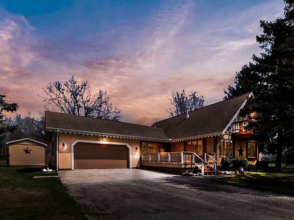 Immaculate 4 bedroom 4 bath home on quiet street with full finished basement, main level master suite, attached 2-car garage and large 12x20 storage shed. Spacious master suite has 2 large closets, custom tiled bathroom & claw-foot tub. Home features newer paint and floor covering throughout, updated kitchen & baths, newer windows, main-floor laundry and irrigated lawn. This comfortable and energy-efficient 2x6 framed home offers a high efficiency NGFA furnace with central air, fireplace on main level and pellet stove in the basement. Enjoy the outdoors on multiple decks, heated pool and tree house in the backyard, private lake access to excellent fishing across the street, and state land adjacent to the north, providing access to snowmobile and ATV trails.