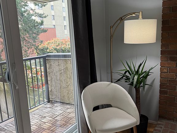 This open concept furnished suite includes one bedroom, a kitchen, and a bathroom. The bedroom includes a bed with a new mattress with a window facing the balcony. The living room, with access to the balcony, also features a sliding glass door providing privacy from the flex/dining area. Building amenities offer one parking spot, an enclosed garage, storage, storage area for bikes and coin-operated laundry. Rent includes hot water. Renter will be responsible for own electricity and internet. Situated just a minute's walk from Davie Street, you'll have convenient access to a supermarket, liquor store, a variety of restaurants, and coffee shops. Plus, you're only a 10-minute walk from the beach, an aquatic center, and an Aquabus ride to Granville Island for shopping. Renter responsible for own electricity BC Hydro account and internet service provider.