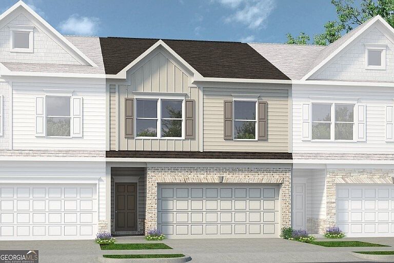 Move in Ready September 2025! The Ellison II plan, located in Smith Douglas Homes new Sanders Park community. This 3BR/2.5BA townhome with a two-car garage features a modern, loft-style open concept floorplan perfect for daily living and entertaining. A linear fireplace is the focal point of the family room. The generous kitchen has plenty of counterspace for meal prep and seats four comfortably! Upgraded 42" upper cabinets provide extra storage, pantry, granite counters, and LVP flooring in the main living areas on the main floor add to the homes ambiance. An open iron rail stairway leads to the second floor, where you will find the owners suite with tray ceiling and a substantial closet, and a tiled shower. Two bedroom, a shared hall bath and a convenient laundry room finish out this floor. Luxury Vinyl flooring also in the owner's bath, secondary bath and laundry room. Nine ft ceiling heights on both levels. Planned neighborhood pool and the lawn maintenance included in your HOA fees leaves you more time to do the things you love! Photos are representative of plan not of actual home being built. Seller incentive with the use of preferred lender.