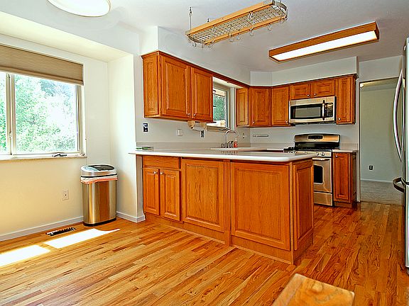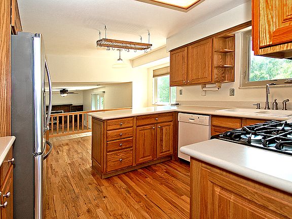 This sunny open home is located in an enclave in Lakewood (lower taxes!). Stainless steel appliances, sky tubes, wood floors and a large family room! 4 large bedrooms with 2 full bathrooms on the upper level. Finished basement with 3/4 bath. Lots of extras: attic fan, extra insulations in the attic, garage and garage door are insulated, fenced in RV pad, newer roof (less than 5 years), new sewer line 2 years ago and kitchen appliances are only 2 years. Large fenced backyard with a patio and mature landscaping. Walk to the park. HOA is voluntary and includes a large dumpster for a community clean up day, a visit from Santa, community garage sale advertising and minor landscaping around the community.