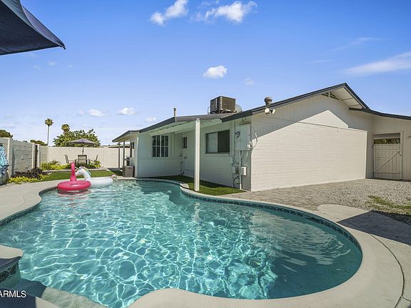 Stunning remodel in Chandler's prime location with NO HOA! This open floor plan gem boasts a refreshed interior and a spacious driveway. Revel in the brand-new dream kitchen featuring self-closing cabinetry and a stylish island with waterfall countertops. Enjoy all-new flooring throughout, along with upgraded bathrooms including a luxurious owner's suite. LED lighting illuminates every corner. Step into the backyard paradise with a sparkling diving pool, lush turf, and sunset-facing pavers. Centrally located near Arrowhead Meadows Park, Intel Chandler Campus, and major highways. Don't miss out on this centrally located haven!