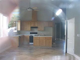 What a charmer, this home has 3 possible 4 bedrooms. The floors consist of Travertine tile and hardwood floors, carpet in bedrooms.Spacious kitchen with great room concept. Home needs minor repairs.