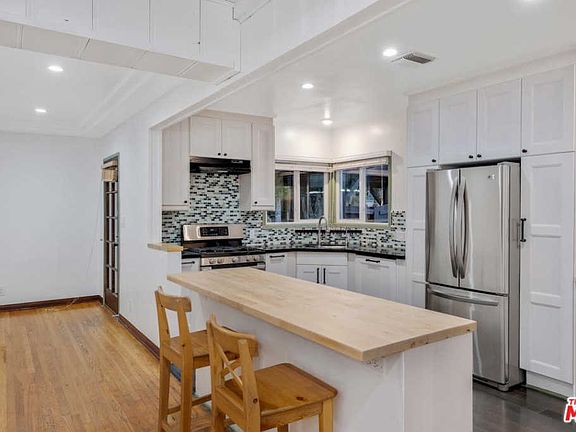 3 bd/1.5 bath with office space and newer POOL located on a HUGE 10,480 sq. ft lot! The property features hardwood floors, central AC and heat, remodeled bathroom, recently landscaped, remodeled kitchen, separate laundry room, lots of sunlight and much more. The detached garage space has been finished with recessed lighting, drywall and new carpet. There is another detached structure on the property which makes for a great playhouse for kids, office, etc. The home has a TON of storage. The driveway offers ample parking for 4+ cars. The home is located in the middle of a very quiet street in a great pocket of Valley Village. Will not last!