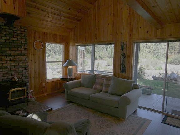 REDUCED! Perfect riverfront setting on this cute furnished cabin! Relax on the deck or yard swing and enjoy the river on this level, park-like yard. Sunny open floor plan, lots of windows, granite counter tops with new cabinets. and knotty pine paneling make this home the perfect get-away cabin or a popular nightly rental! Two bedroom mound septic system, private well and sprinkler system installed. You'll love this relaxing setting! Motivate seller!