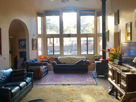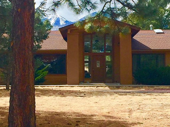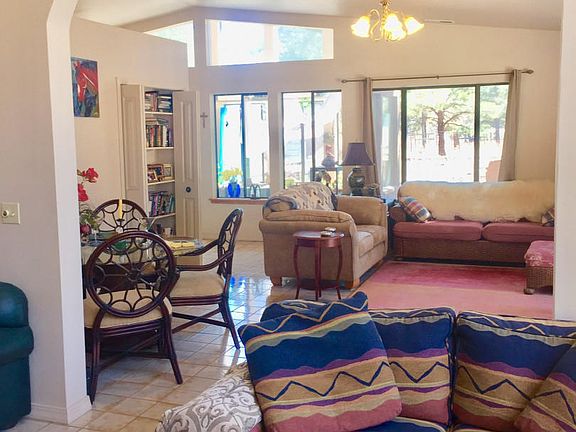 Five acres of Ponderosa Pines with close up mountain views. 6,800 ftelevation. 3 BD, 2 BA, 3,250 sq. ft. home, set 100 yards back from private road. Quiet, private with room toroam on this treed parcel. Large LR, high ceilings, walls of glass and a wood stove. Adjoining family roomwith loads of pantry storage. Formal dining room. Sunroom for growing flowers/ vegetables. Huge bonusroom can be used for home office, gym, etc. Currently used as a sound/art/dance studio. Propane furnace.Two storage sheds. Extensive porches for stargazing and watching the elk, deer, hummingbirds, etc. Eightmiles to stores. 75 miles to the Grand Canyon. Sunset Crater, Wapatki, Walnut Canyon Monuments allclose by. Views include 12,600 ft. Humphrey's Peak, Arizona's highest mountain.